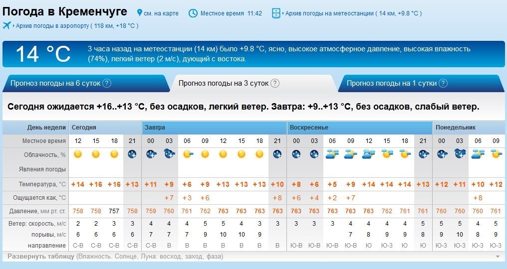 Теплий вікенд прогнозує кременчужанам rp5. Також тут нас попереджають про пориви вітру до 10 м/с. Мінімальна температура повітря – +5°C, максимальна – +14°C. Без опадів.
