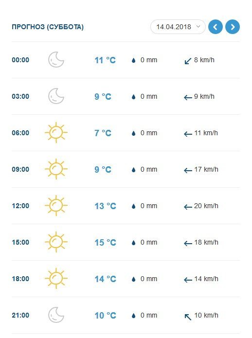 Схожий прогноз і на Gismeteo. Тут також обіцяють суху суботу і дощовиту неділю та температуру повітря від +8°C до +15°C.