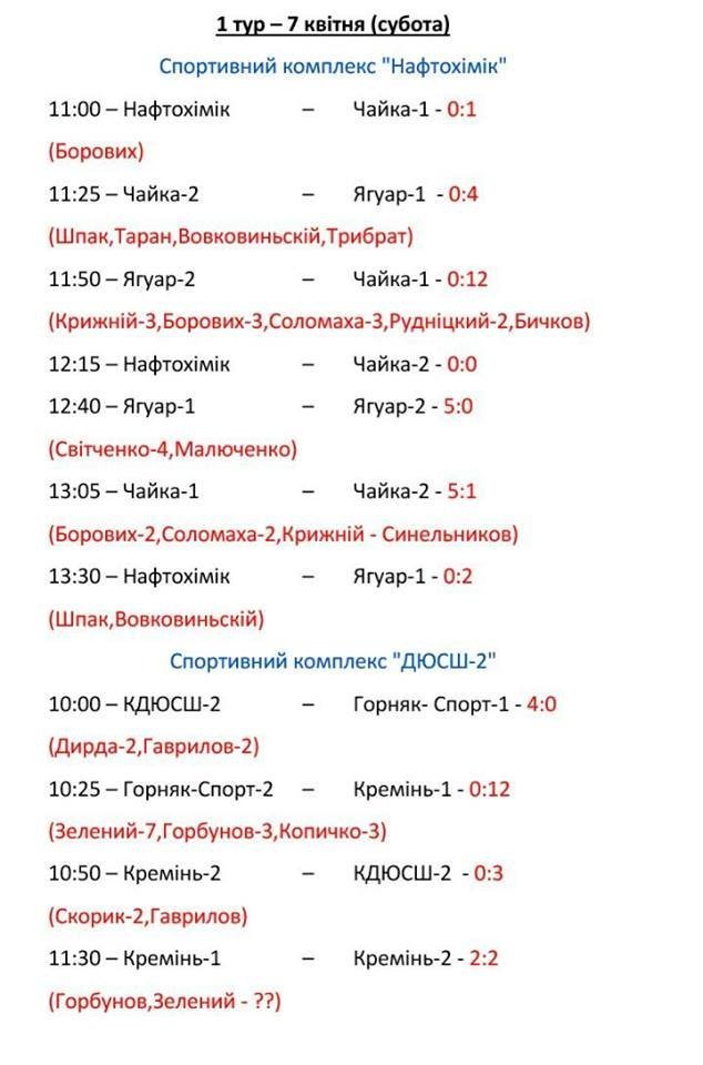 | 4 | Кремінь-1 | 2 | 1 | 1 | 0 | 14:2 | 4 |