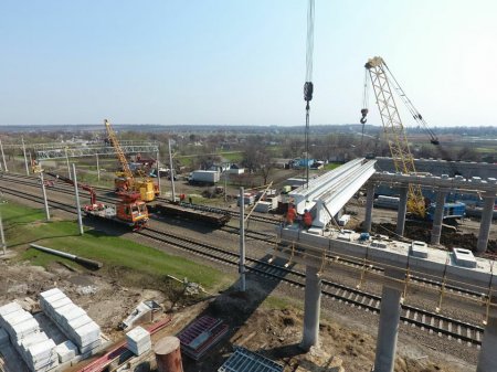 Як відбувався монтаж балок середнього прольоту на шляхопроводі в с.Бутенки Кобеляцького району! На Полтавщині майже 15 років не споруджувалися подібні об'єкти.