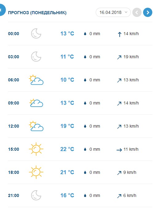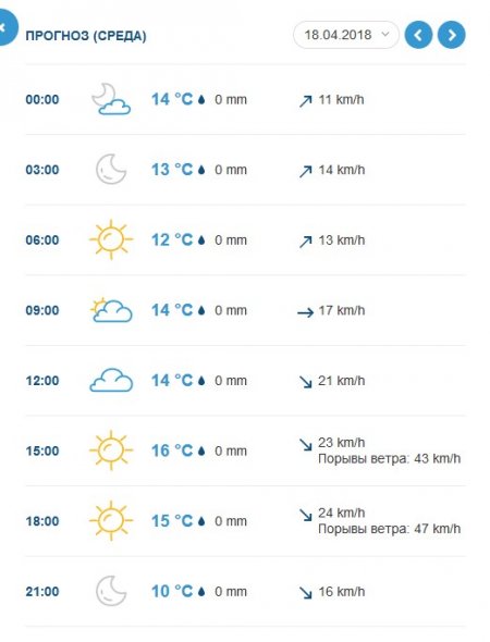 А вже у середу, 18 квітня, за їх прогнозом, спека спаде до +16°C та здійметься вітер з поривами до 13 м/с.