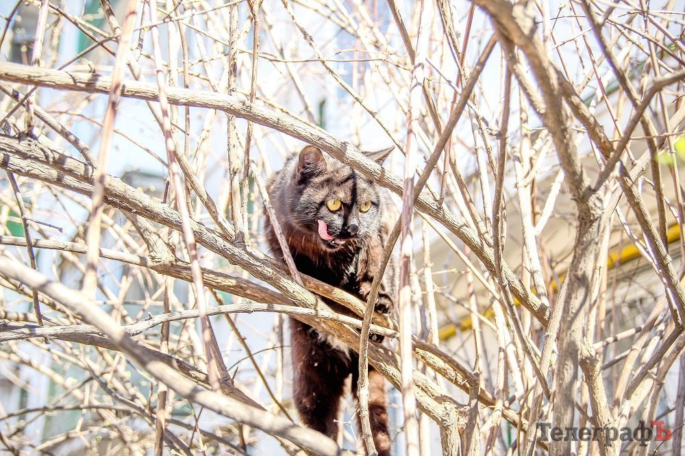 – Мяяууу мяяяяу мяяяяяу, – пропела нам. Слезать не пожелала, запутавшись в ветках.