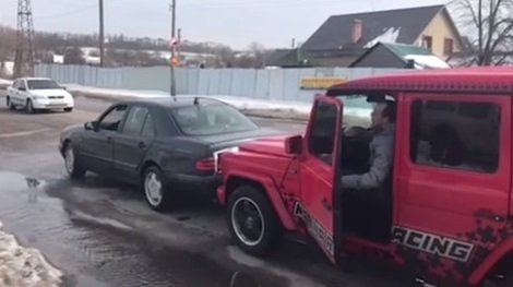 За допомогою «кенгурятника» на машині можна не лише чистити сніг, а й допомогти друзям.
