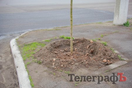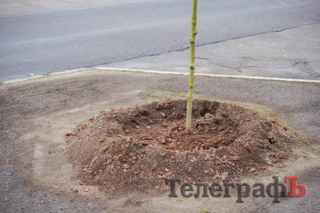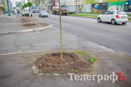 Цікаво, що клени висадили настільки рівно, що в деяких місцях проігнорували спеціально відведені для дерев місця і прилаштували саджанці ледь не в асфальті.