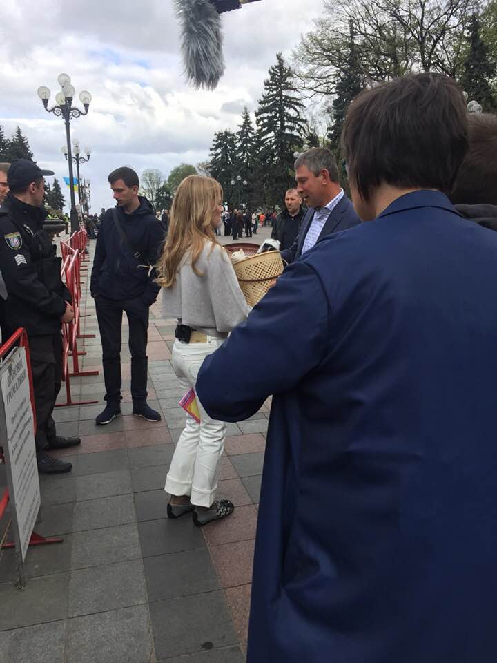 19 квітня під Верховною Радою телеведуча Ольга Фреймут намагалася вручити Народному депутатові України від Кременчука Юрію Шаповалову кошеня. Про це на своїй сторінці у Facebook написала Ольга Краснова.