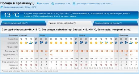 Теплий вікенд прогнозує кременчужанам rp5. Також тут нас попереджають про пориви вітру до 16 м/с. Мінімальна температура повітря - +7°C, максимальна - +19°C. Без опадів.