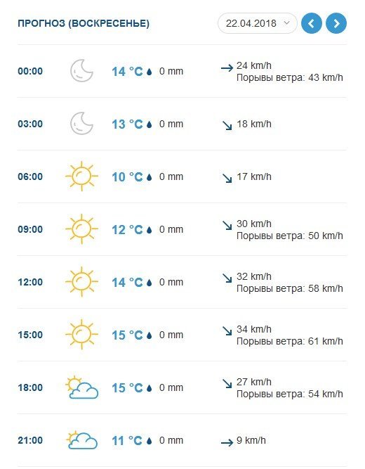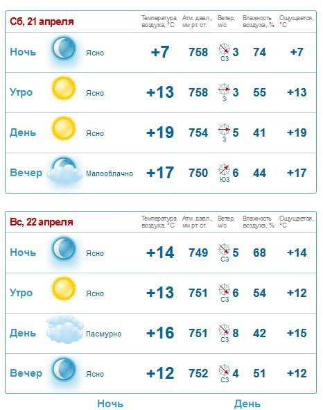 22 квітня вітер знову розвернеться на північно–західний, 7–12 м/с, температура повітря вночі +6°C…+11°C, вдень – +13°C…18°C.