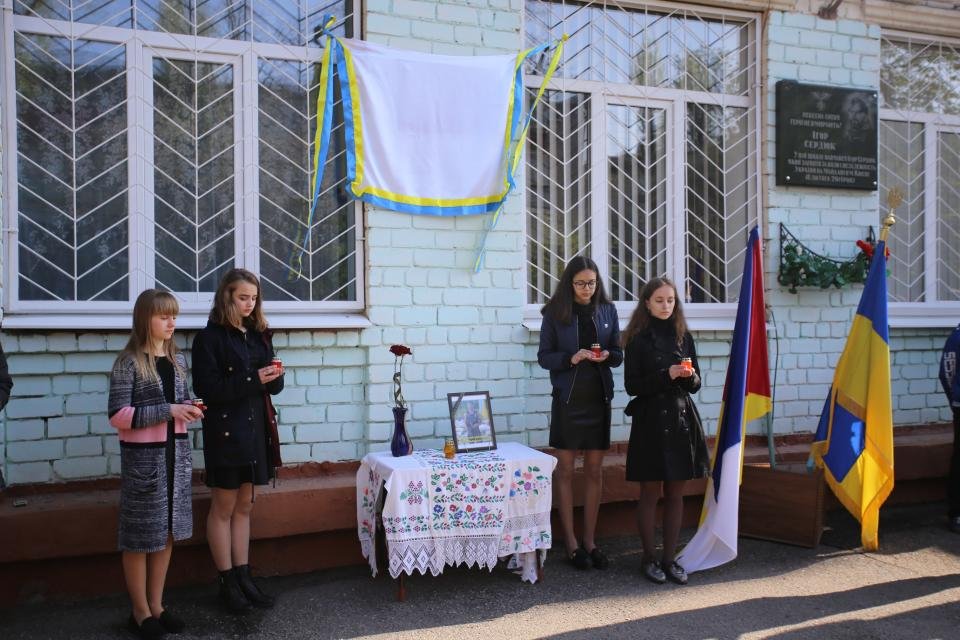 У школі №18 вже є меморіальні дошки загиблим випускникам: Володимиру Скрипниченку, який загинув, виконуючи інтернаціональний обов’язок у Афганістані та Ігорю Сердюку - Герою Небесної сотні