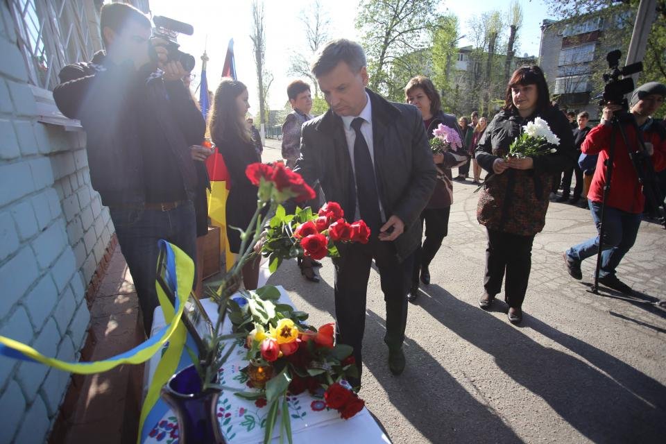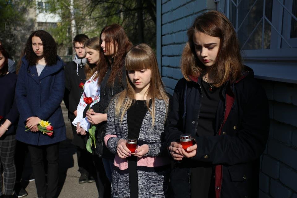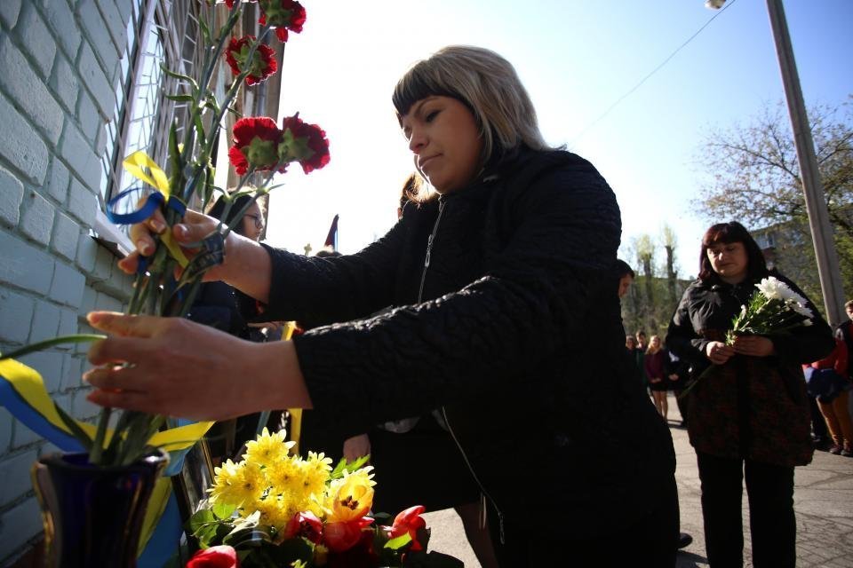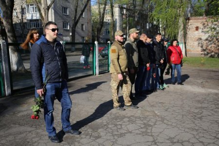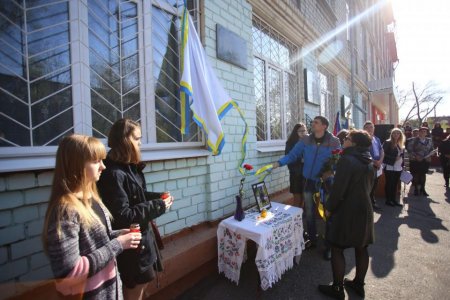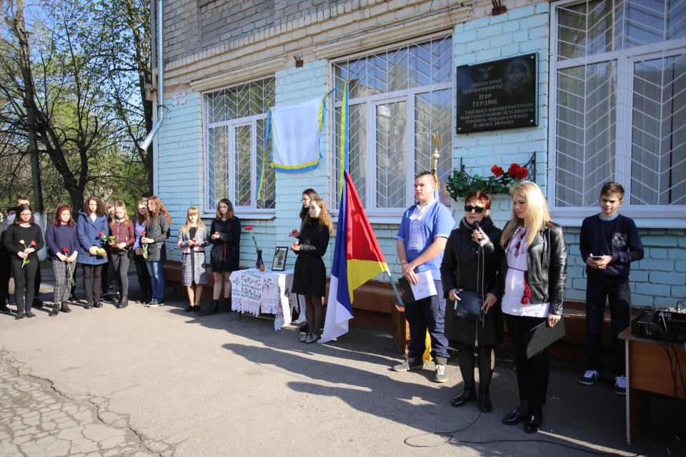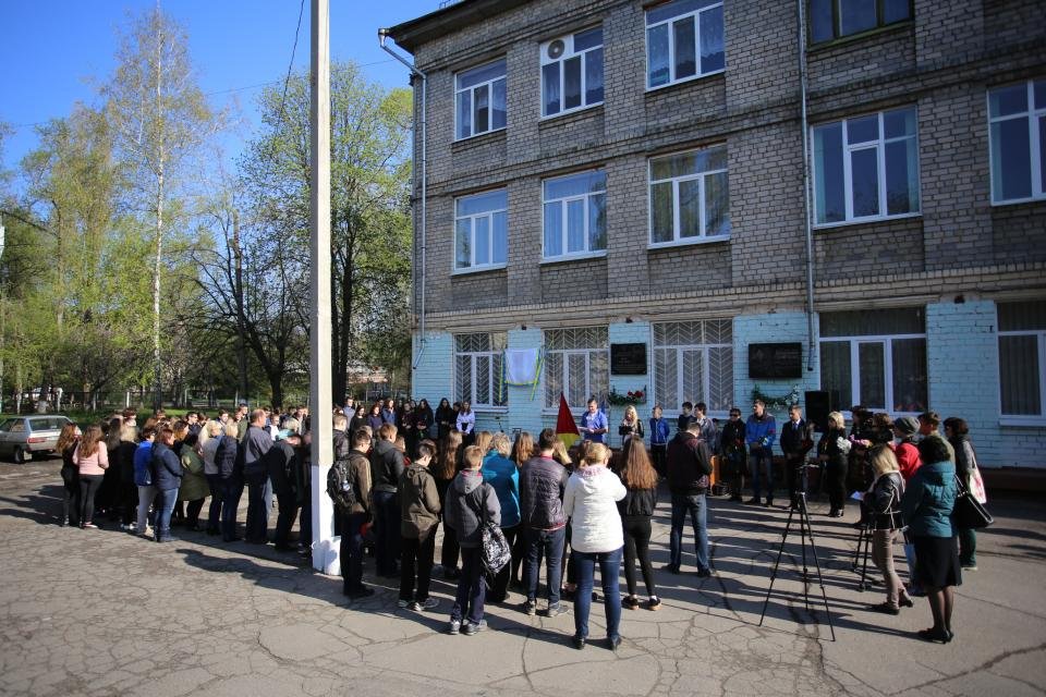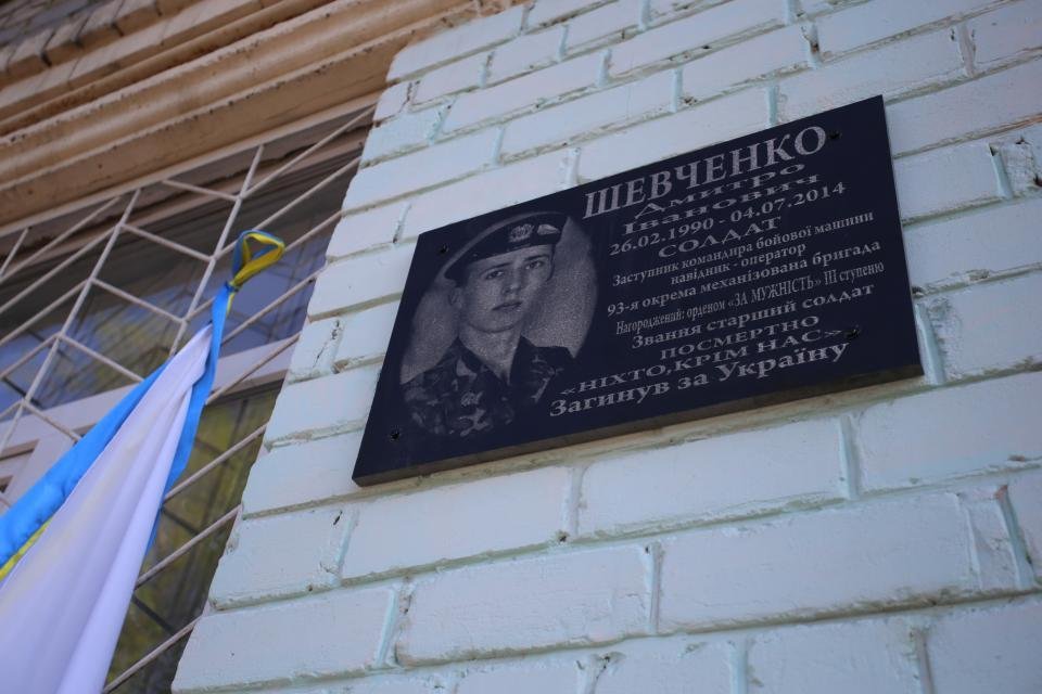 Сьогодні зранку, 20 квітня, на фасаді школи №18 відкрили меморіальну дошку загиблому учаснику АТО та випускнику школи Дмитру Шевченку. Право відкрити меморіальну дошку надали мамі Дмитра Валентині Шевченко та старшому братові Олександру.