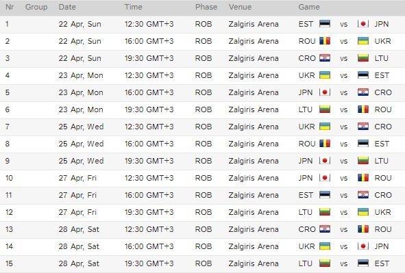 Розклад змагань: