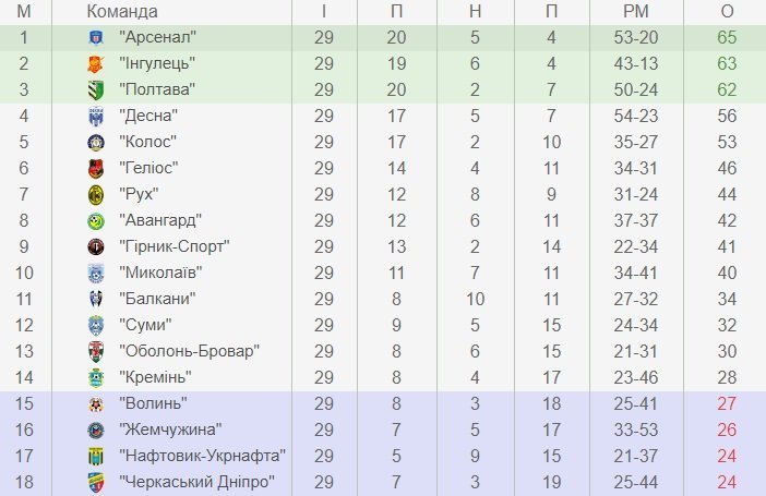 Результати 29 туру