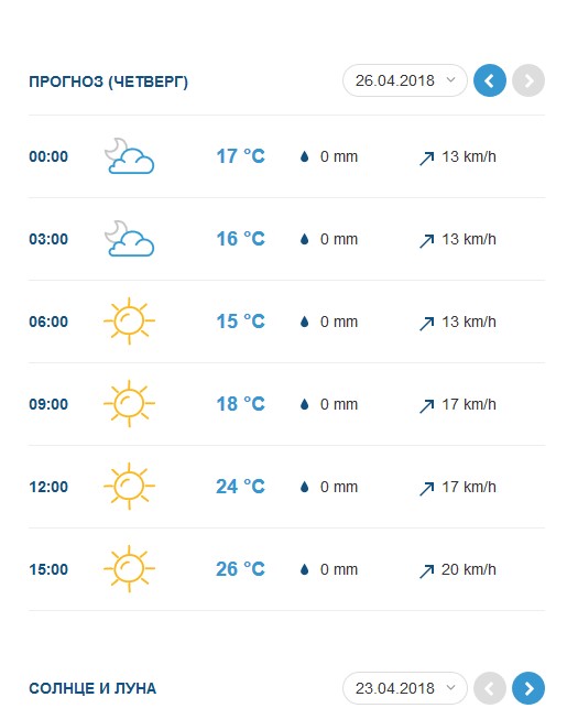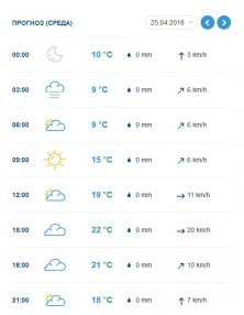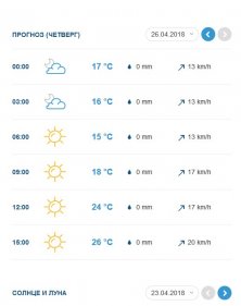 На rp5 нас попереджають, про дощ у вівторок, 24 квітня, та в ніч на суботу, 28 квітня. У середу, 25 квітня, та п'ятницю, 27 квітня, зранку місто буде оповите серпанком. Видимість від 1 до 9 км. У четвер-п'ятницю здійметься сильний вітер з поривами до 15 м/с. Максимальна прогнозована температура повітря +26°C, мінімальна - +7°C.