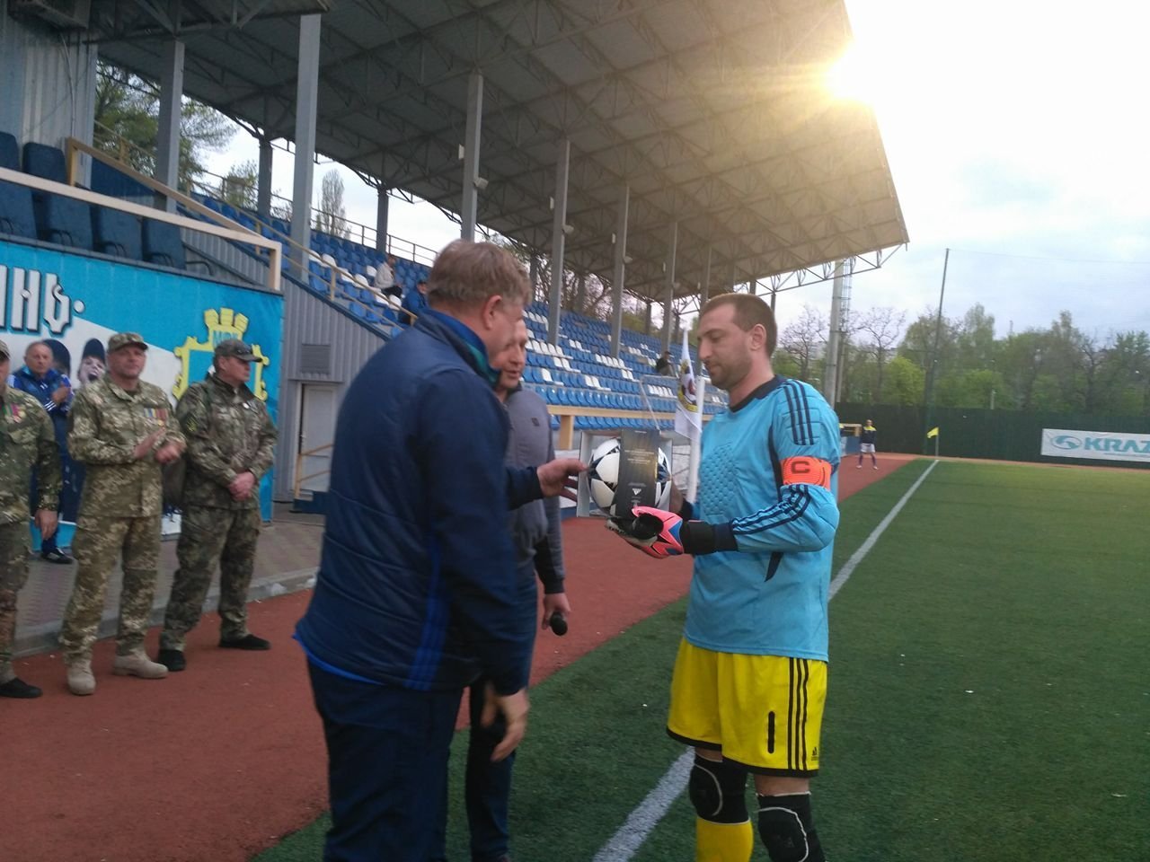 З вітальним словом до військових, які пройшли бойові дії у зоні АТО, звернувся мер Кременчука Віталій Малецький та голова Федерації футболу Кременчука та директор МФК “Кремінь” Андрій Недяк. Вони побажали футболістам перемог та мирного неба над головою.