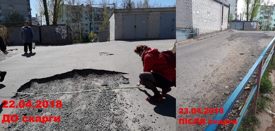 Но мэрия все-таки решила не ждать: яму засыпали 23 апреля, Пиддубная разместила фото на своей странице. Хоть и не капитальный роемонт, но ездить уже можно.