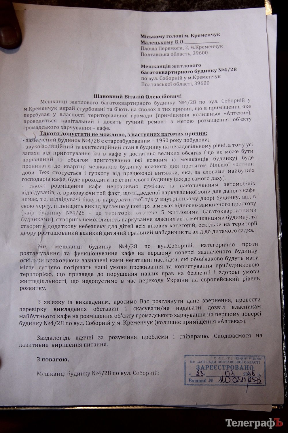 Письмо жителей мэру Виталию Малецкому