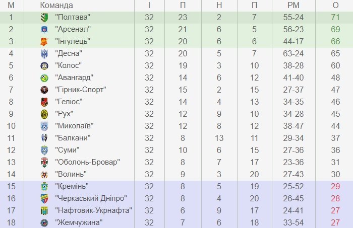 Результати 32 туру