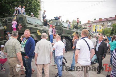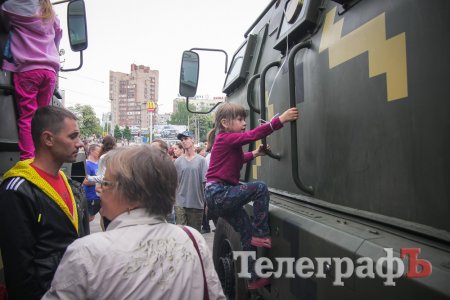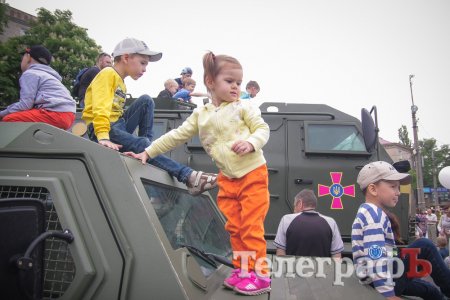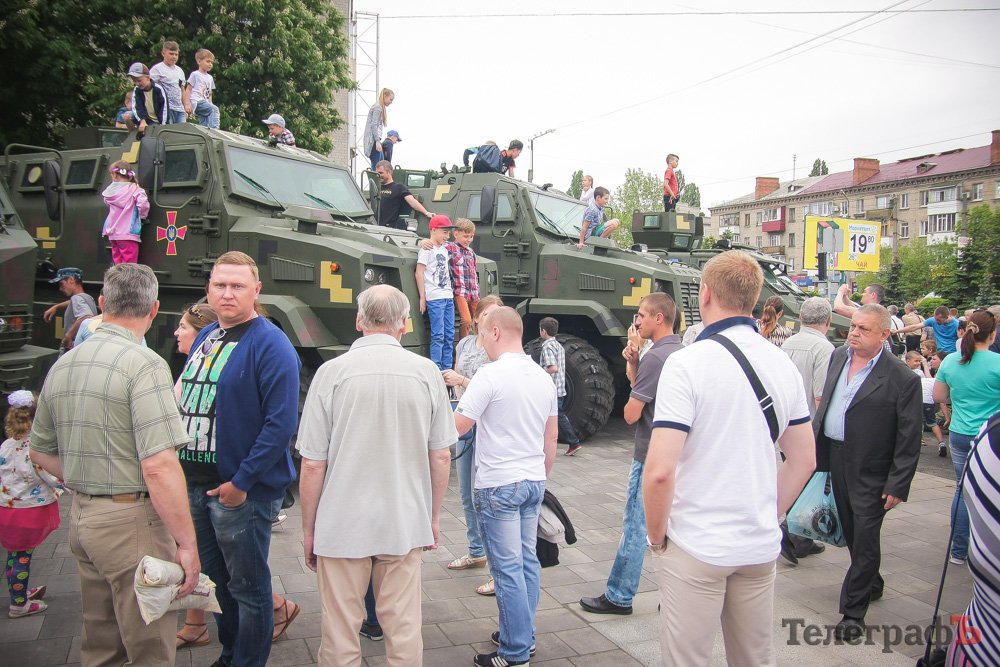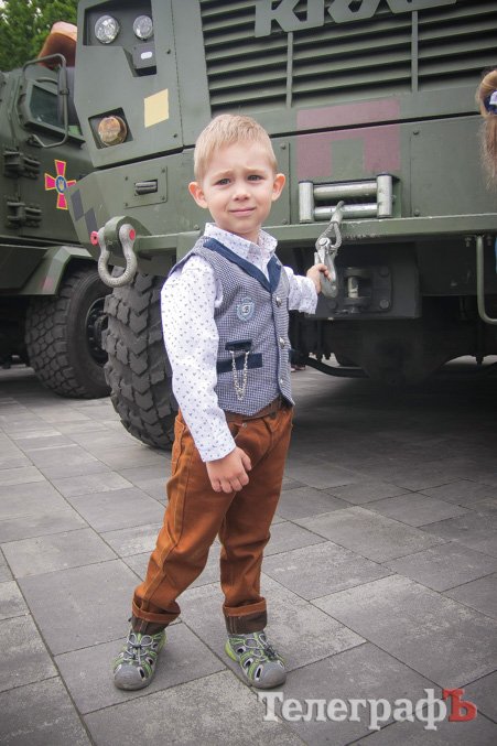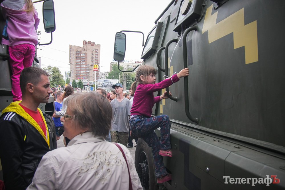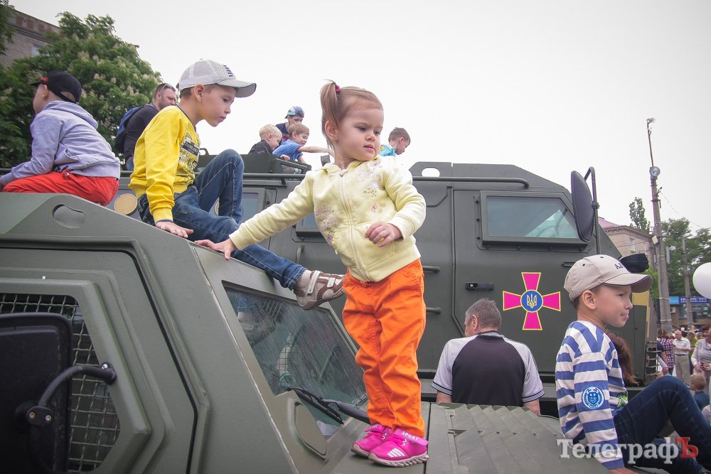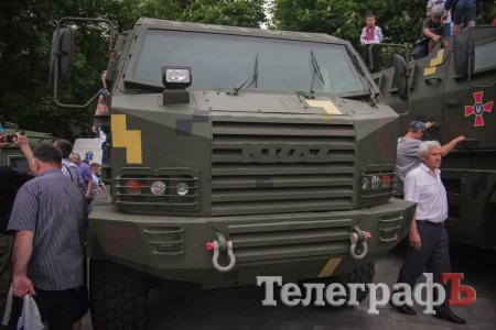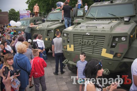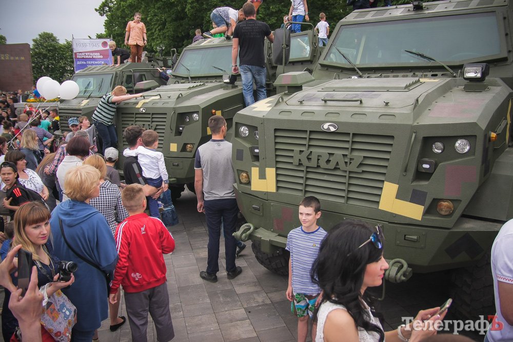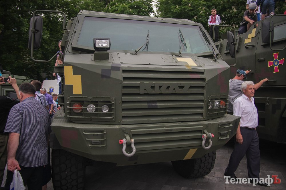 Компания «АвтоКрАЗ» выставила на обозрение несколько бронированных автомобилей, по которым с удовольствием лазили дети.