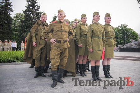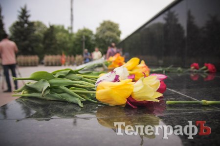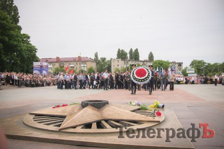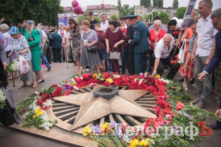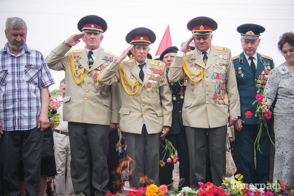 Собравшиеся почтили память погибших в войне минутой молчания и возложили цветы к вечному огню.