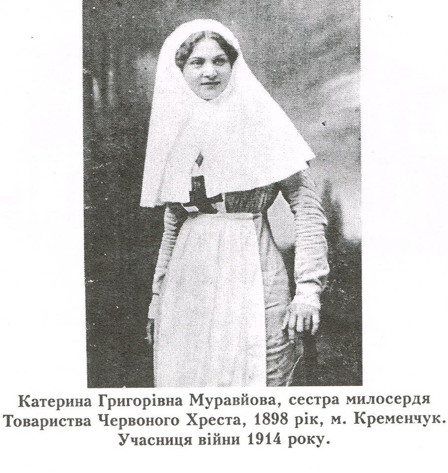 Однією із перших і найбільш відомих сестер милосердя у Кременчуці була Муравйова Катерина Григорівна, яка брала участь у Першій світовій війні у 1914 році і проявила мужність та вірність даній клятві.