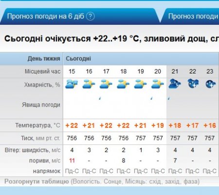 Попередження про грозу та короткочасне шквалисте посилення вітру до 15-24 м/с є також на Sinoptik.
