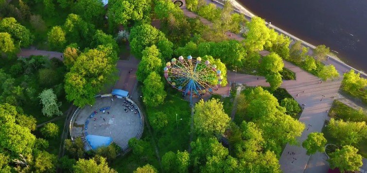 8 мая на youtube-канале FlyMore появилось видео Приднепровского парка и колеса обозрения в нём, снятых с неба. Редко когда увидишь «чертово» колесо с такого ракурса: