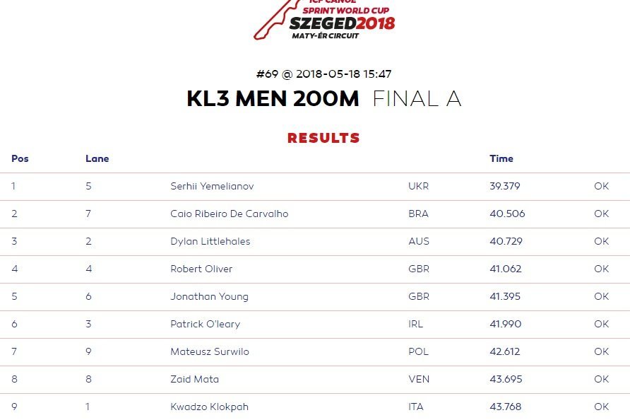 18 травня кременчужанин Сергій Ємельянов першим фінішував на дистанції 200 метрів в І етапі Кубка світу з греблі на байдарках та каное. В Сегеді (Угорщина) українець прийшов першим з результатом 39.379 секунди, випередивши спортсменів з Бразилії та Австрії.