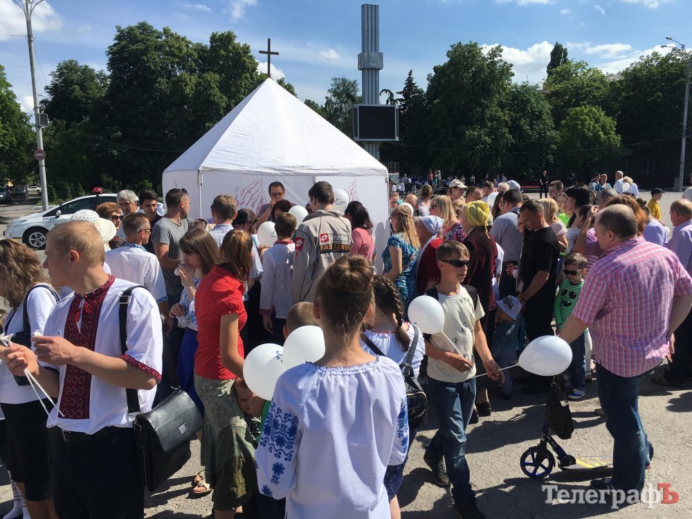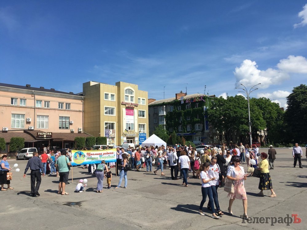 На площі Незалежності зібралося вже близько 150 кременчужан. Їх об’єднав «Фестиваль щасливих сімей» – звідси почнеться урочиста хода.