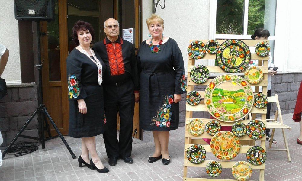 Приємним яскравим доповненням до заходу став стенд з розмальованими тарілками майстра петриківського розпису Анастасії Маховик.