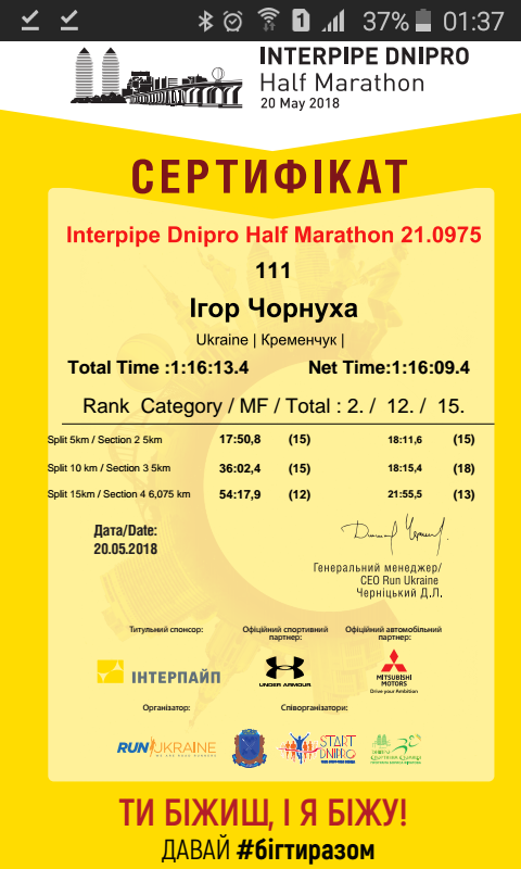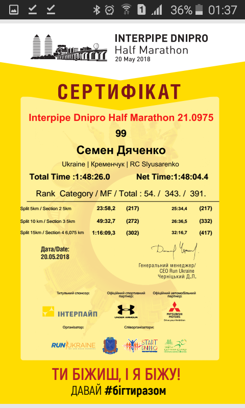 Кременчуцькі гідно виступили на Interpipe Dnipro Half Marathon, який 20 травня відбувся у Дніпрі. Про це Телеграфу повідомив тренер Ігор Слюсаренко.