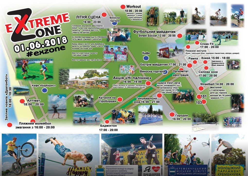 Творчі фестивальні зони розташовуватимуться в парку культури та відпочинку «Придніпровський», а екстремальні – на площі Перемоги.