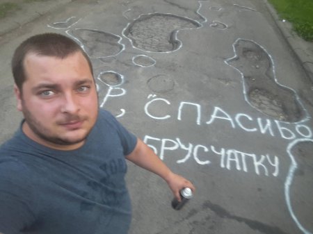 «Мэр, «спасибо» за брусчатку», – говорится в оставленном на дороге сообщении.