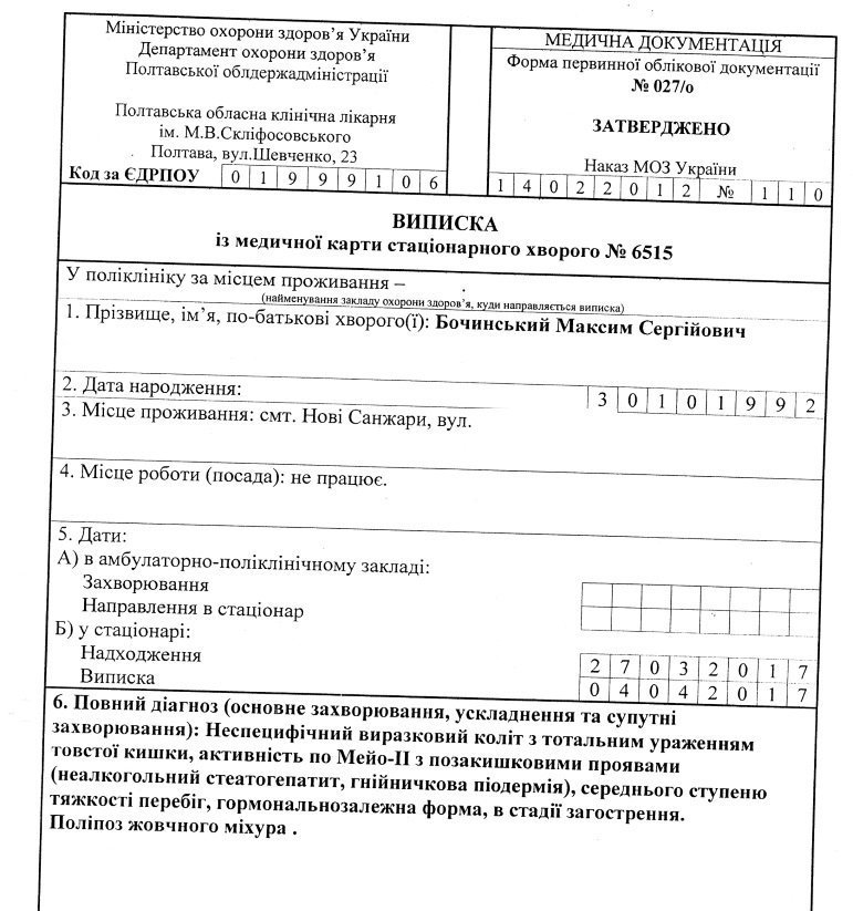– Таких грошей у нас немає. Всі збереження ми витрачаємо на боротьбу з НВК (неспецифічний виразковий коліт) з тотальним ураженням внутрішніх органів. Влада України і медицина просто викинули нас на доживання, а жити Максиму без операції залишилося дуже мало. Єдині, хто нам допомагає, це прості люди, за що їм ми дуже вдячні. Врятуйте нашого сина, він теж хоче жити!, – звернувся з прохання батько Сергій Бочинський.