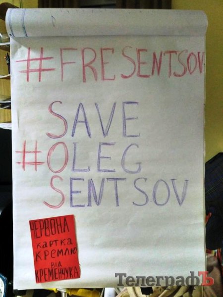 У Кременчуці підтримали акцію #SaveOlegSentsov показав «червону картку» режиму Путіна. Акція відбулася на підтримку політичного в’язня відомого кінорежисера Олега Сенцова, який 14 травня оголосив безстрокове голодування з вимогою звільнити усіх українських політв’язнів.
