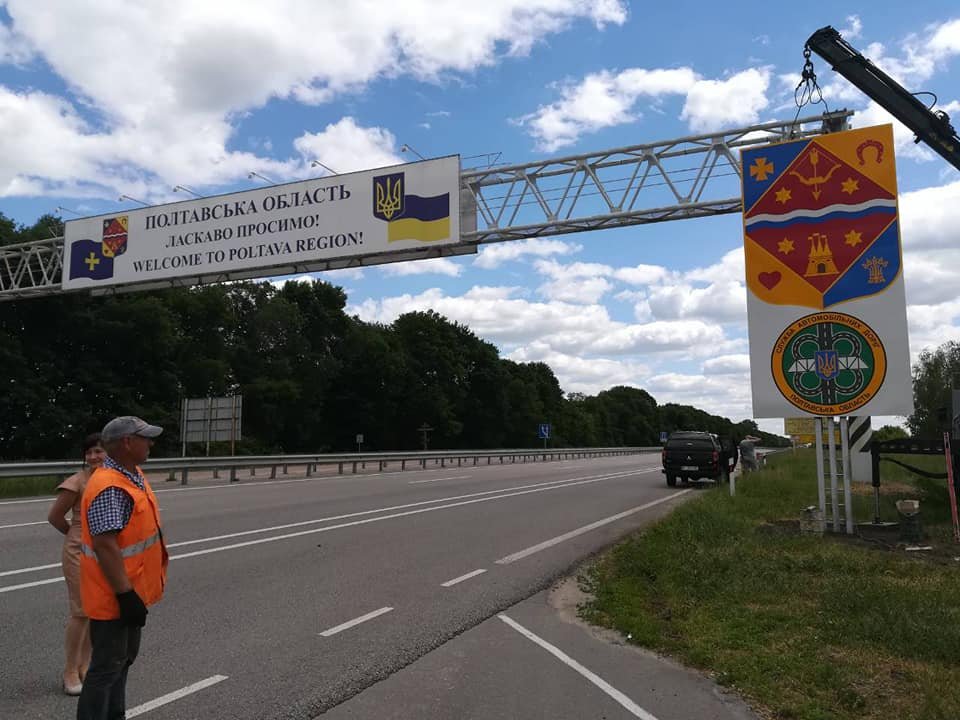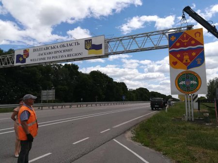 На в'їзді до Полтавської області зі сторони Києва встановлено межовий знак. Його ескіз розробив полтавець Євген Чередніченко, подавши кращу роботу на оголошеному конкурсі. Про це повідомляє Служба автомобільних доріг у Полтавській області.