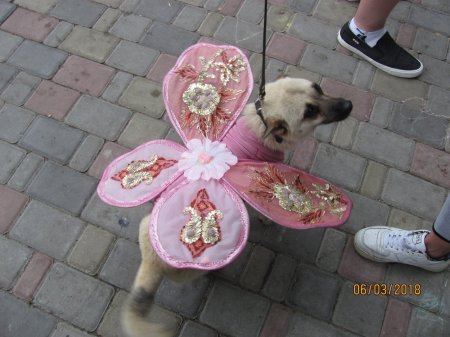 Во время парада Снежка была в костюме бабочки.