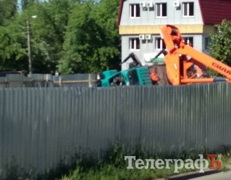 Как сообщают очевдцы, чтобы его достать пригнали другой кран. Как ранее писал Телеграф, на участке строится торговый комплекс.