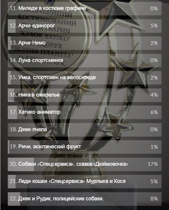 Собаки «Спецсервиса» отстали от победительницы всего на 2% голосов. Но они не останутся в обиде: Уля и ее хозяйка уже традиционно передали свой приз приюту.