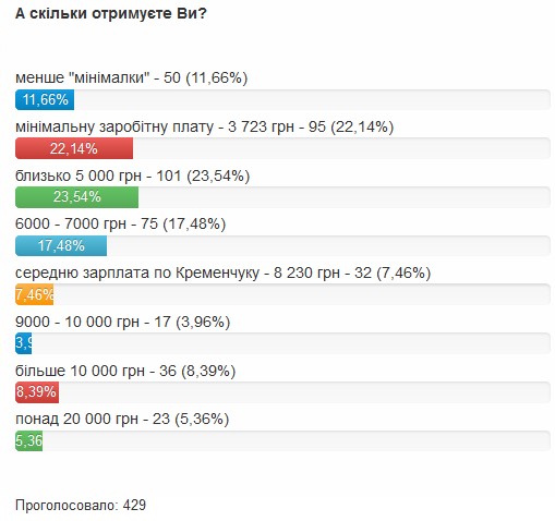 Згідно з опитуванням на нашому сайті, більшість читачів ТЪ, отримують близько 5 000 гривень: