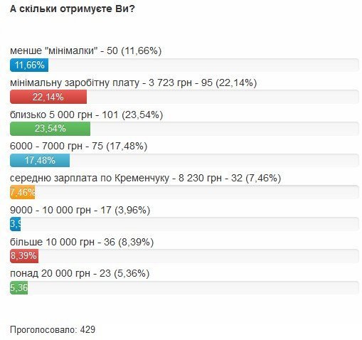 Згідно з опитуванням на нашому сайті, більшість читачів Т, отримують близько 5 000 гривень: