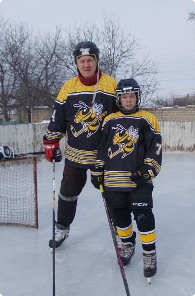 5. Вадим: Предлагаю назвать команду «Пчелы» или «Шмели», поскольку, на мой взгляд, это имеет глубокий смысл – в пчелиной семье распределены все роли – тружеников, защитников и т.д. Всей семьей трудятся на общее дело, а если надо, жалят.Логотип и хоккейка с сотами разработаны лично мной с учетом новых модных тенденций НХЛ. Таких хоккеек изготовлено только две – для меня и моего внука.