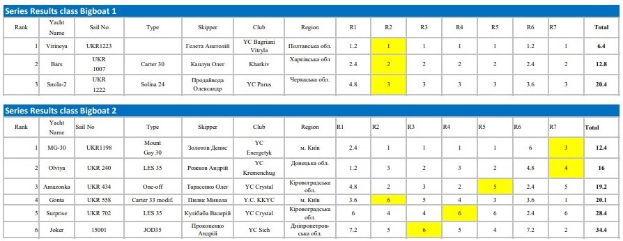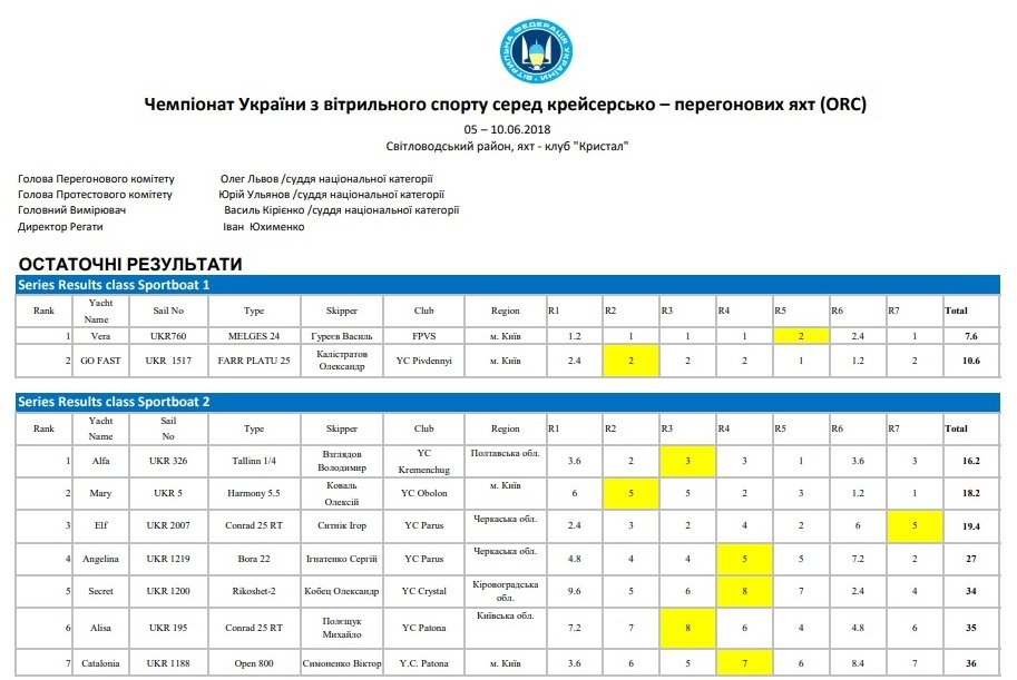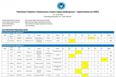 Результати Чемпіонату України з вітрильного спорту серед крейсерсько-перегонових яхт