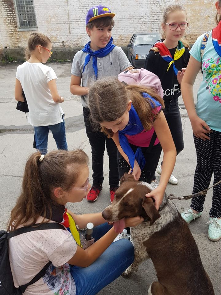 Також школярі познайомились зі службовим собакою Рудиком та кінологом Володимиром Богданом.
