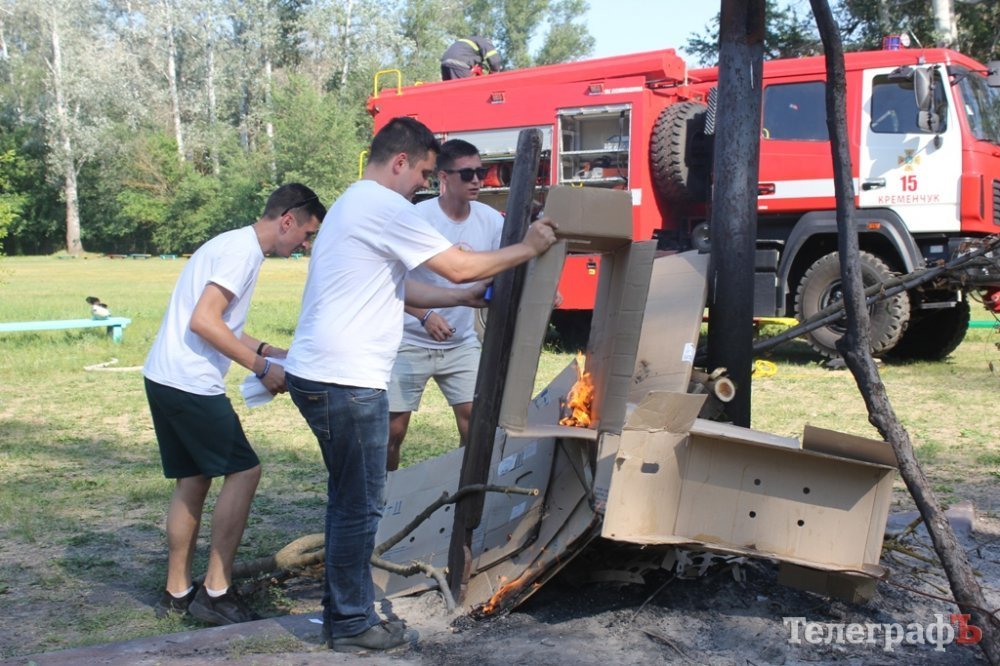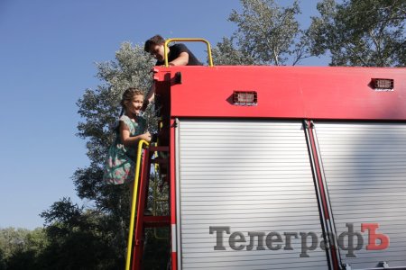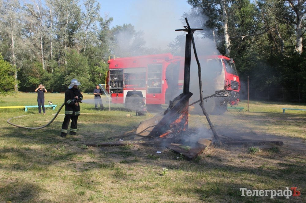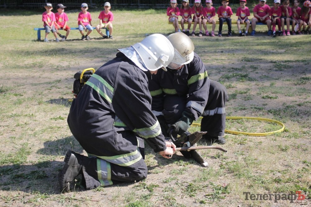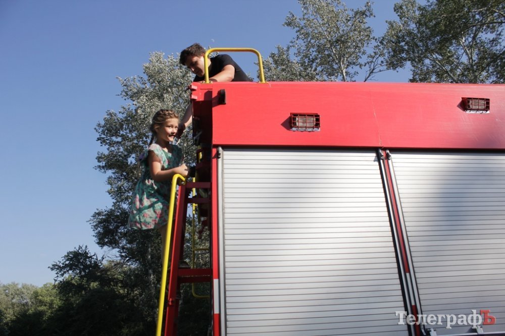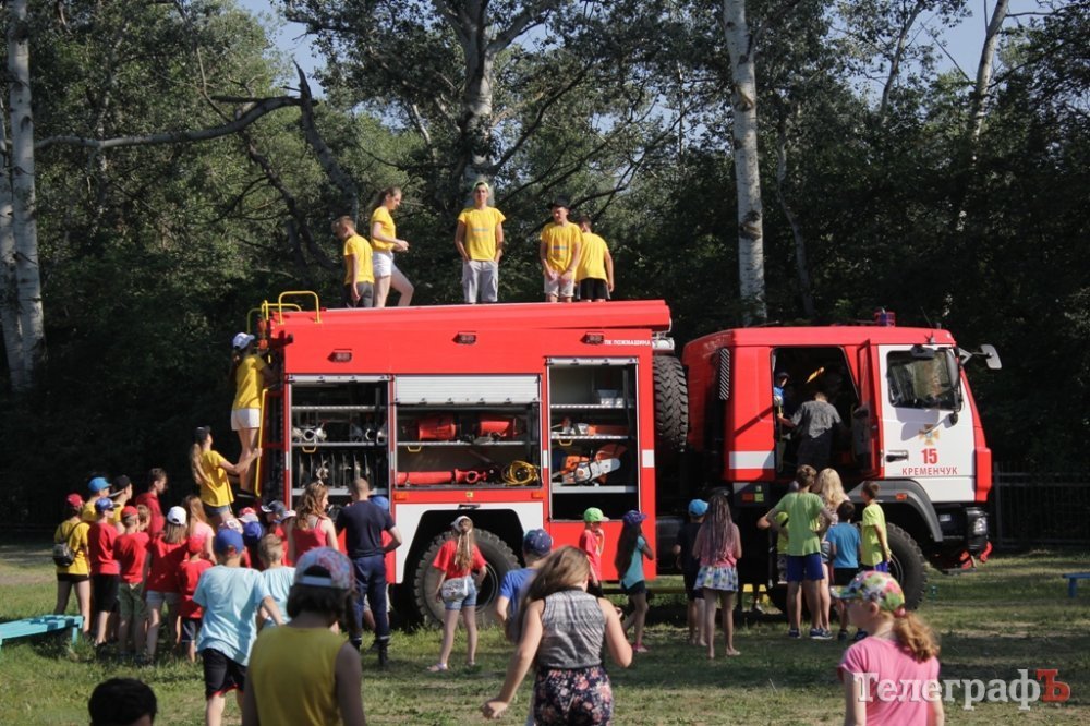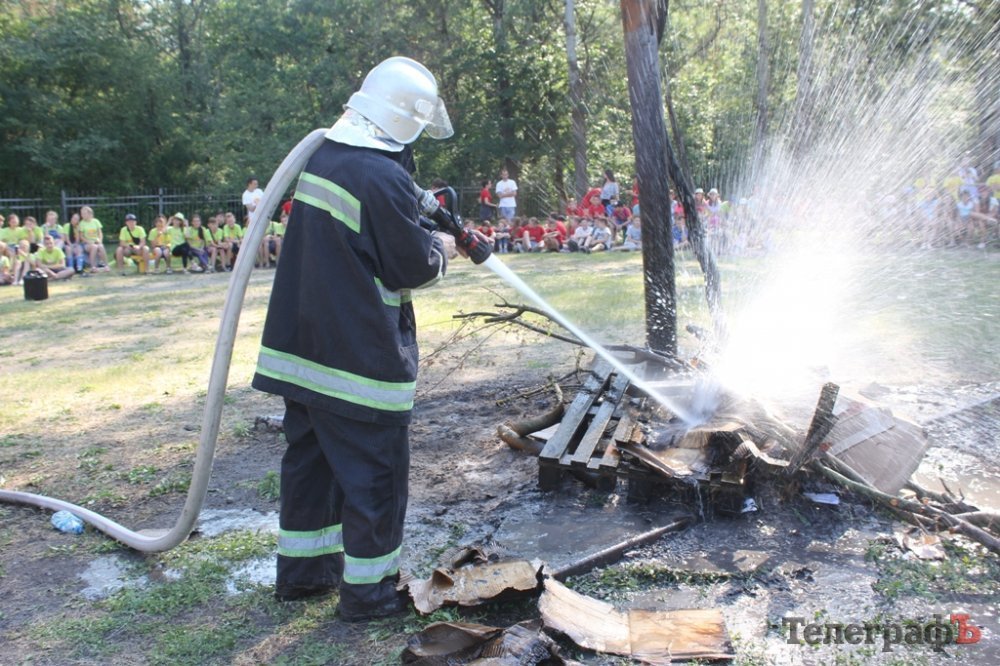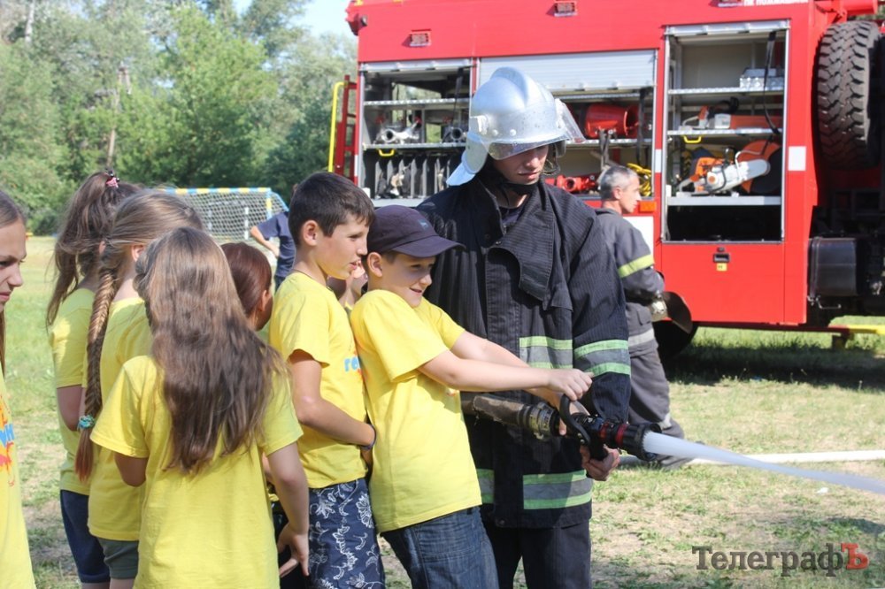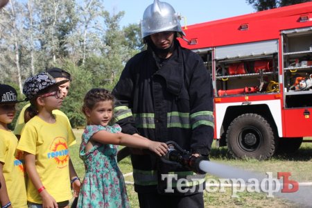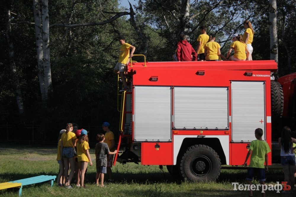 На практиці рятувальники продемонстрували свої «іграшки» – гідравлічні ножеці, якими легко можна перекусили металеву трубу та гідравлічну подушку, яка здатна підняти величезний МАЗ. Також вогнеборці загасили умовну пожежу. Кожен маленький відпочивальник зміг спробувати себе у якості пожежгоно.