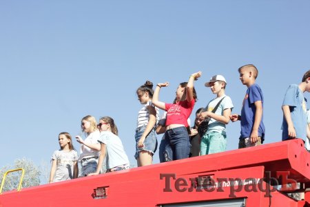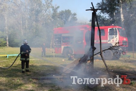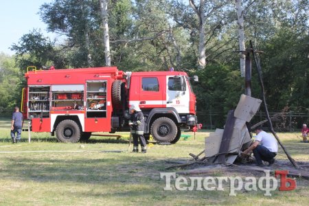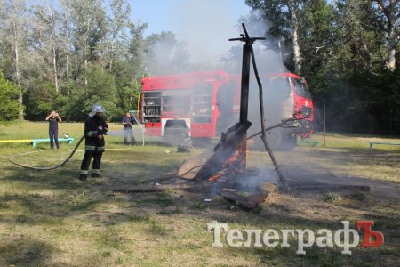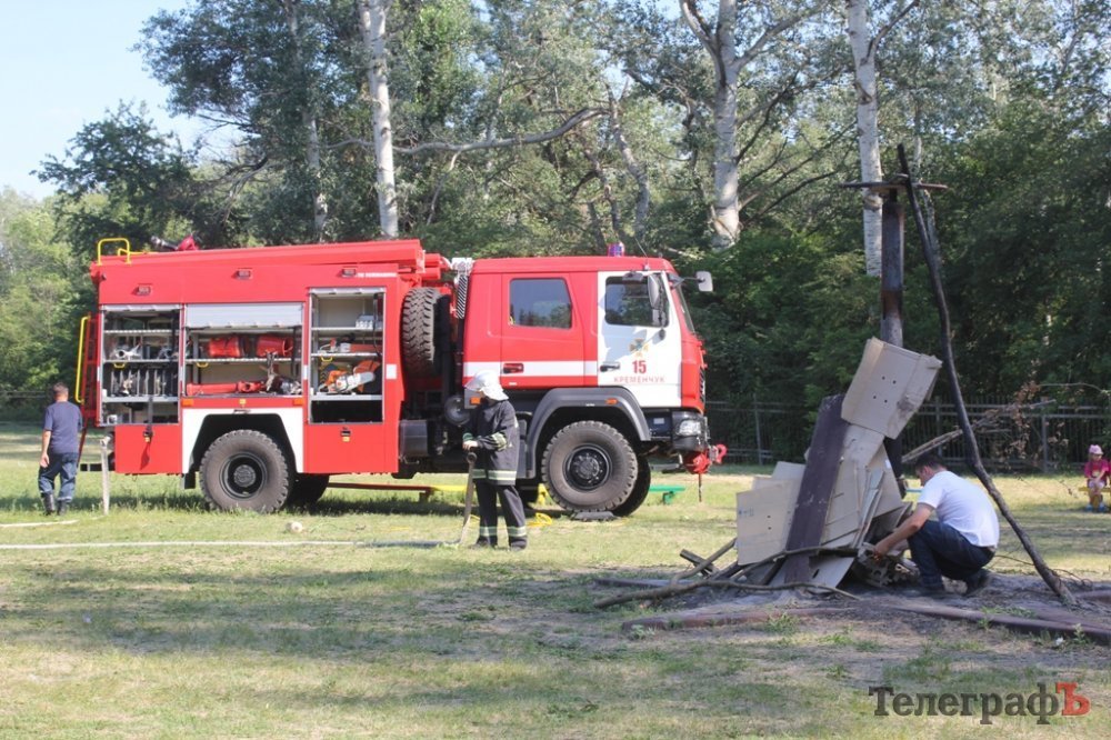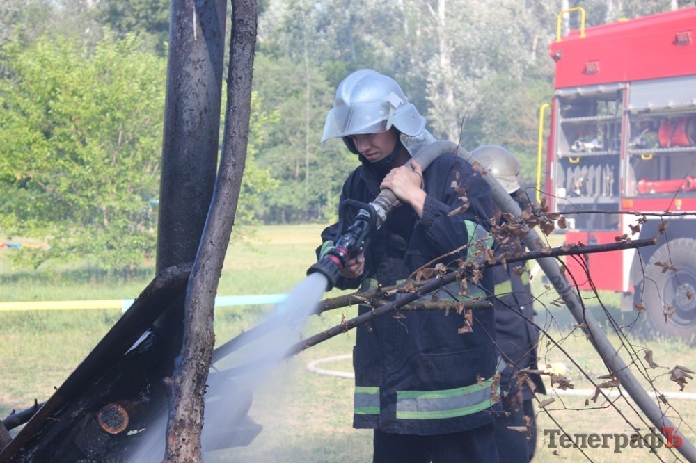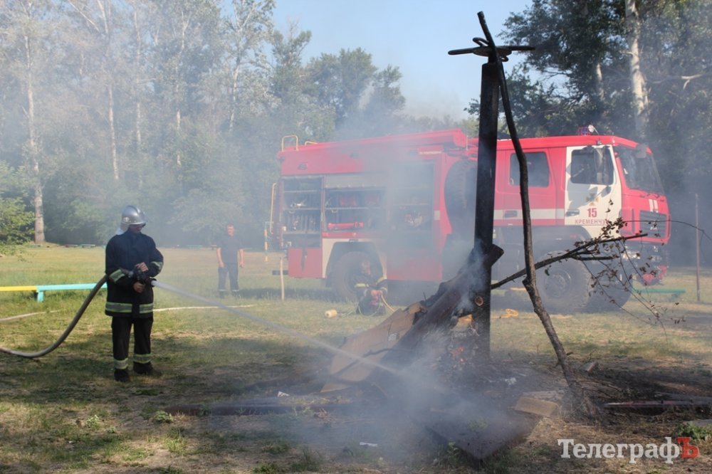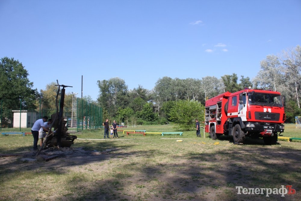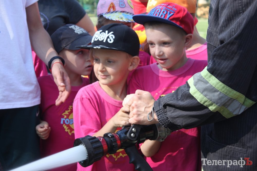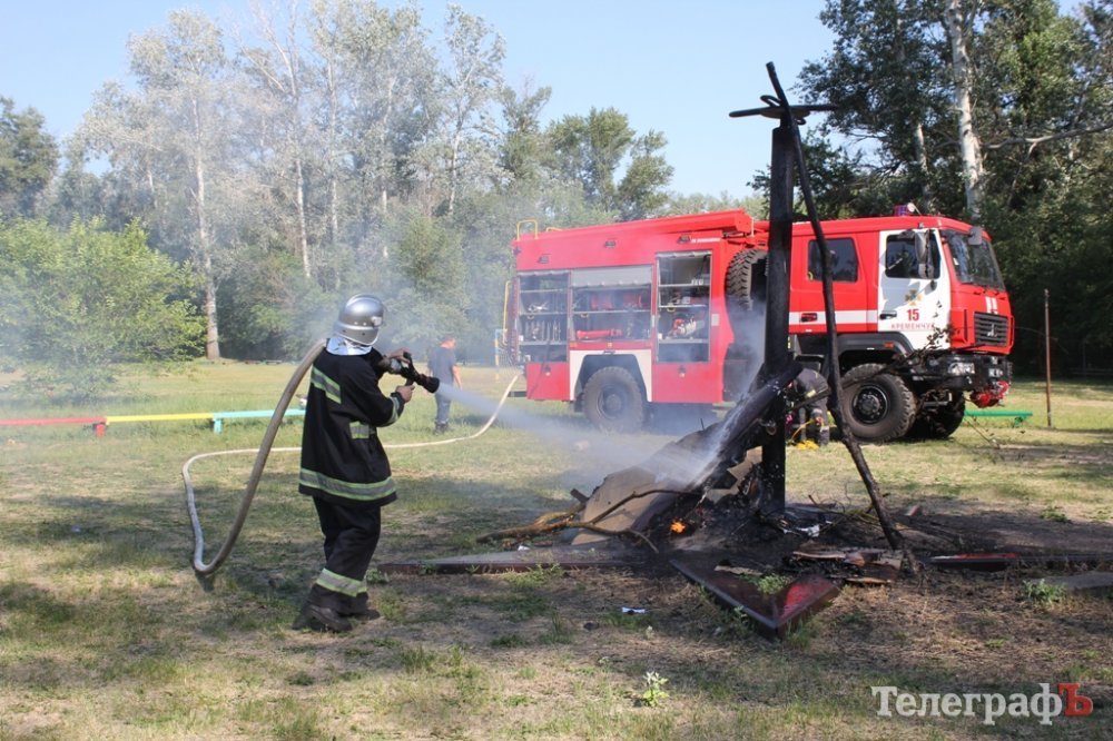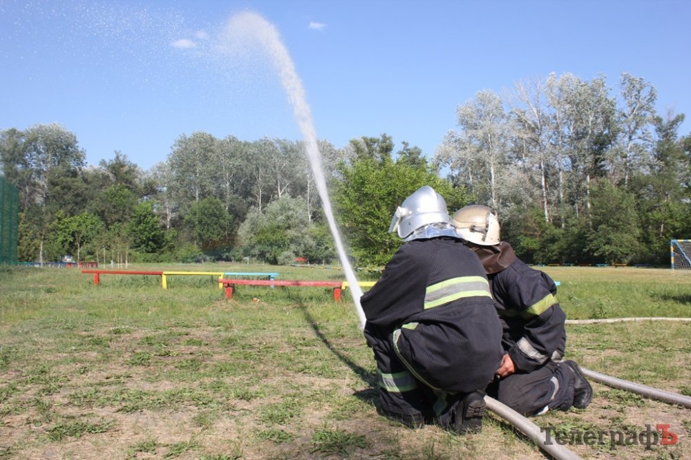 На практиці рятувальники продемонстрували свої «іграшки» – гідравлічні ножеці, якими легко можна перекусили металеву трубу та гідравлічну подушку, яка здатна підняти величезний МАЗ. Також вогнеборці загасили умовну пожежу. Кожен маленький відпочивальник зміг спробувати себе у якості пожежгоно.