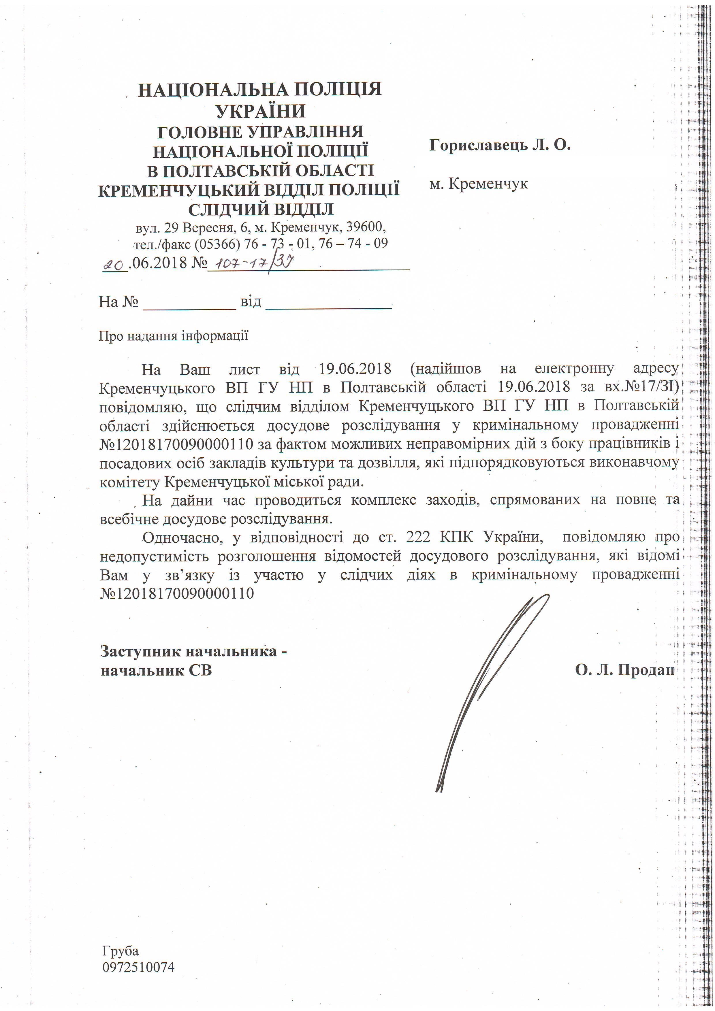 Ось сам документ, який надійшов з поліції активістці у відповідь на її звернення: