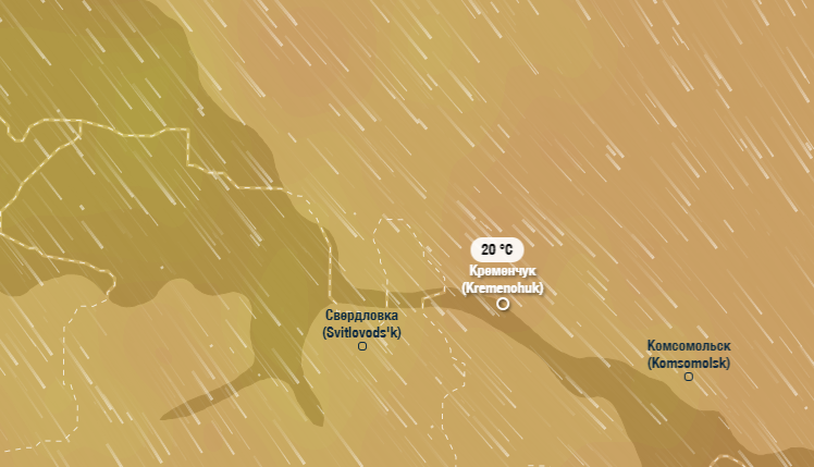 Ventusky жодних опадів кременчужанам на вікенд не обіцяє. Повітря, за їх прогнозом, понизиться до +20°C.