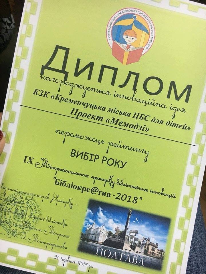 Кременчуцьку ЦБС для дітей відзначили за інноваційну ідею «Мемодзі».