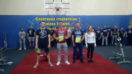 - Денис Барильченко в.к. 83 кг сума трьох вправ 450 кг.