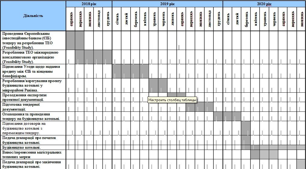 Согласно новому сроку, котельная на Раковке должна быть построена в 2020 году. График строительства (дополнение к проекту решения) выглядит так: