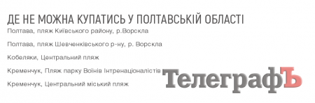 «Центр громадського здоров’я» МОЗУ опубликовал список опасных для купания пляжей. Их 96 по Украине в целом. В список попали и два кременчугских пляжа. Информация о небезопасности пляжей основана на результатах исследований воды 15-21 июня.
